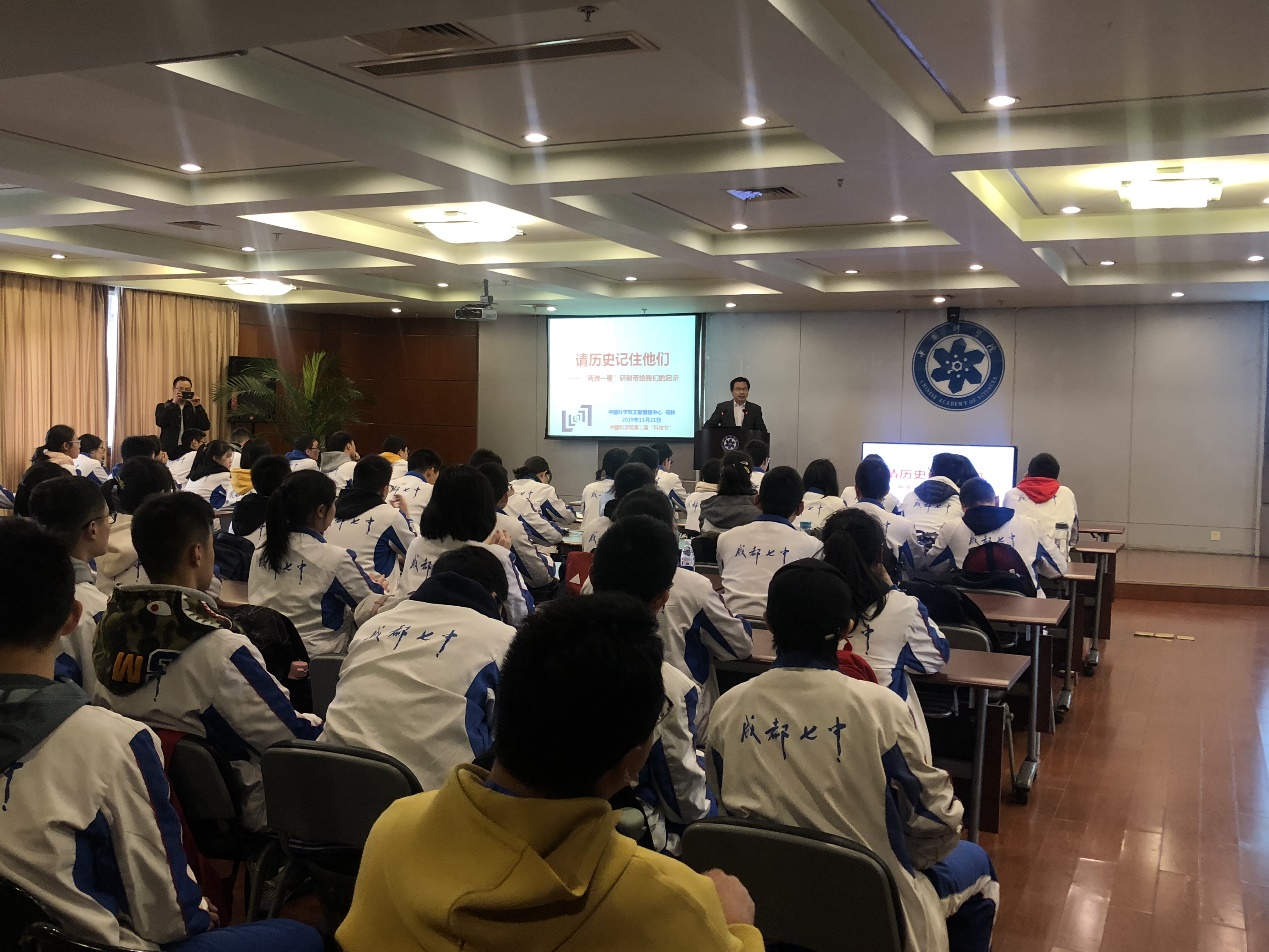 11月20日至21日期间,在中科院第二届科技节成都会场活动中,成都中心特别邀请中国科学院文献情报中心党委书记兼副主任何林分别为棠湖中学、成都高新七中和尚阳小学的学生开展科学家精神讲座《请历史记住他们——“两弹一星”研制带给我们的启示》。