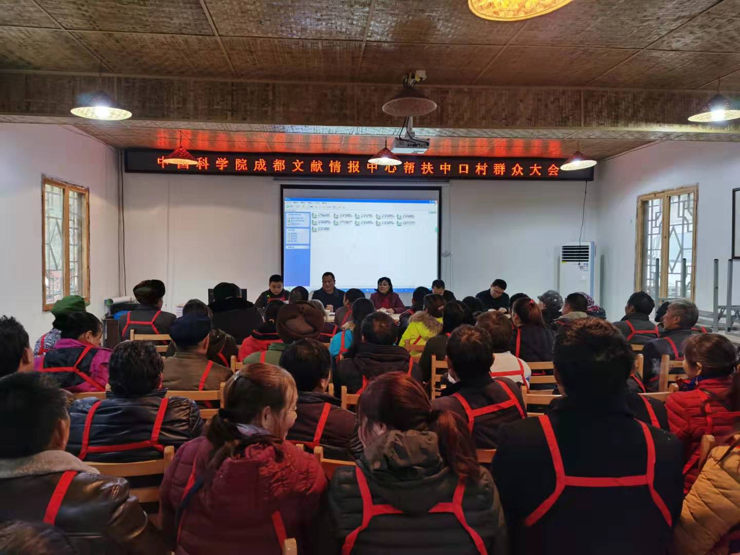 11月29日,成都文献情报中心赴对口帮扶中口村开展“不忘初心、牢记使命”村民大会暨“农民夜校-树新风”活动。成都分院四级高管李彦琴,中心纪委书记房俊民,利州区农业局、利州区党校、荣山镇党委相关领导、扶贫工作队员、全体村民参加会议。
