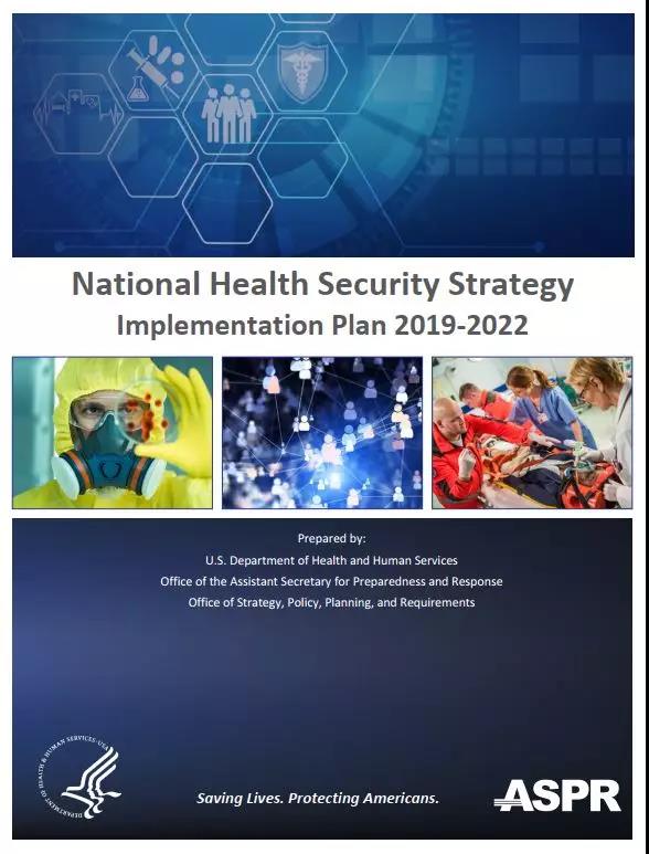 2019年1月,美国卫生与公众服务部发布《国家卫生安全战略实施计划2019-2022》(National Health Security Strategy Implementation Plan 2019-2022,NHSS/IP 2019-2022),该计划为加强国家预防、检测、评估、准备、减轻、应对21世纪卫生安全威胁并从中恢复的能力提出了愿景。该计划与《美国国家安全战略》、《美国国防战略》、美国《国家生物防御战略》等国家战略保持一致,并提供相应支持。