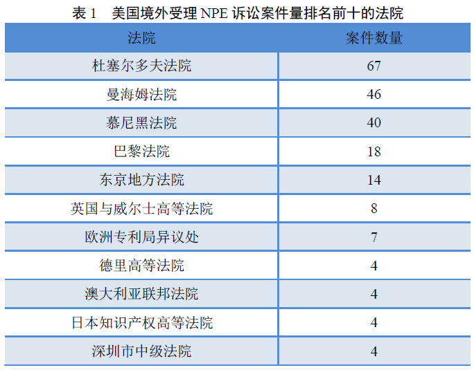 表1列出了目前美国境外受理NPE诉讼案件数量排名前十的法院。据此了解NPE对法院的偏好,以及各管辖区如何做好诉讼准备。