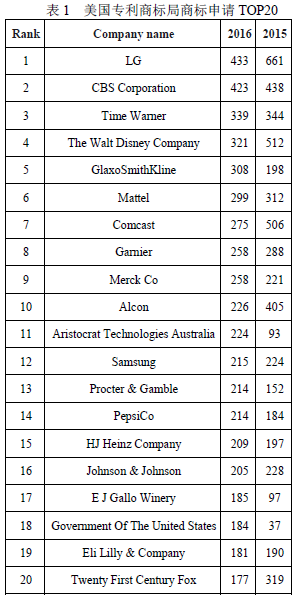 (2)Top20的商标申请中美国政府商标申请增长速度最快,主要来自于美国海军和陆军公司,2015年申请37件,2016年达到180件;