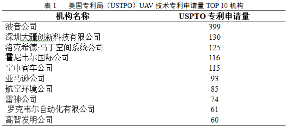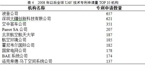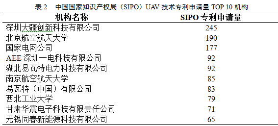 3. USPTO和SIPO UAV技术专利申请量TOP 10