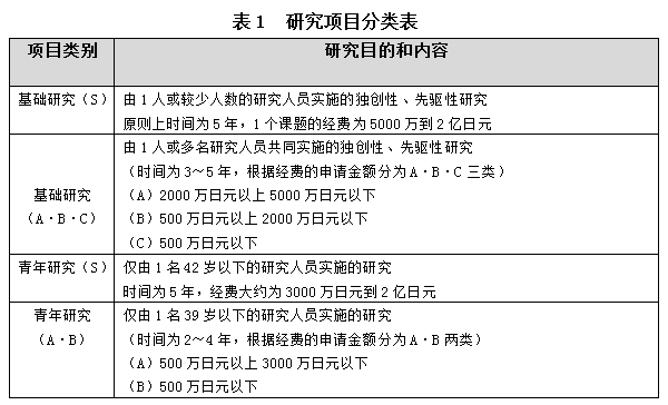 (5)从研究项目类别来看(表1),基础研究(S)(A)和基础研究(B)中,教授、研究中心主任级别的研究人员的比例较高,占7到9成。研究课题的数量在基础研究(B)中不断减少,在基础研究(C)中不断增加。