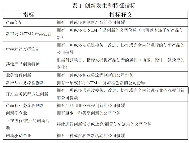 创新数据可用于构建指标、进行创新行为和绩效的多变量分析。创新指标提供与创新活动、创新、创新出现的环境以及创新对创新企业和经济的影响有关的统计信息。多变量分析可以确定影响创新决策,产出和结果的不同因素的重要性。创新发生及其特征相关指标摘录如下。