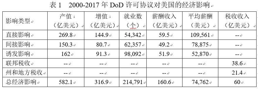 原文标题:National Economic Impacts from DoD License Agreements With U.S. Industry 2000-2017