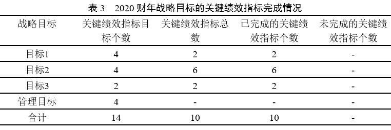 2020财年,USPTO共制定了10项关键绩效测度指标,并为每个测度指标制定了年度绩效目标。2020年,USPTO完成或超额完成的目标共计10项(表3)。