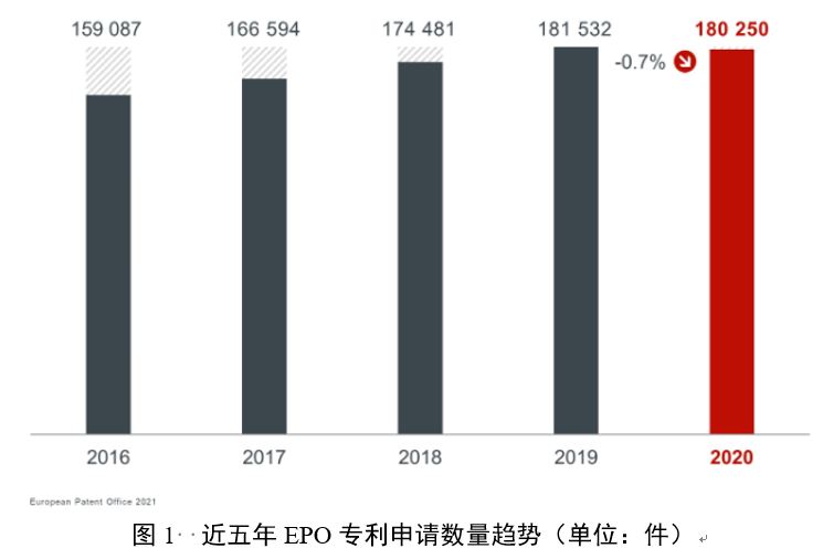 2020年,欧洲专利局(EPO)共受理专利申请180250件,受COVID-19疫情影响,较2019年(181532件)下降了0.7%。据EPO主席António Campinos介绍,总体而言,专利活动在技术领域和经济区域之间波动,但一直很活跃,但2020年的情况远远没有全面反映COVID-19疫情的长期影响。
