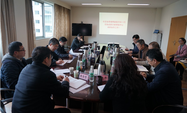 3月13日下午,四川省委副秘书长、省委政策研究室主任、改革办常务副主任曾卿,与省委政策研究室、省委改革办副主任谭文劲、敬茂明等一行6人调研中国科学院成都文献情报中心,听取中心工作汇报,围绕加强决策咨询服务的战略合作等举行座谈会。成都分院分党组书记、常务副院长王学定,成都分院综合办公室主任江晓波陪同调研。成都文献情报中心主任张志强、党委书记邓勇、副主任杨志萍以及各部门负责人参加座谈会。王学定主持座谈会。
