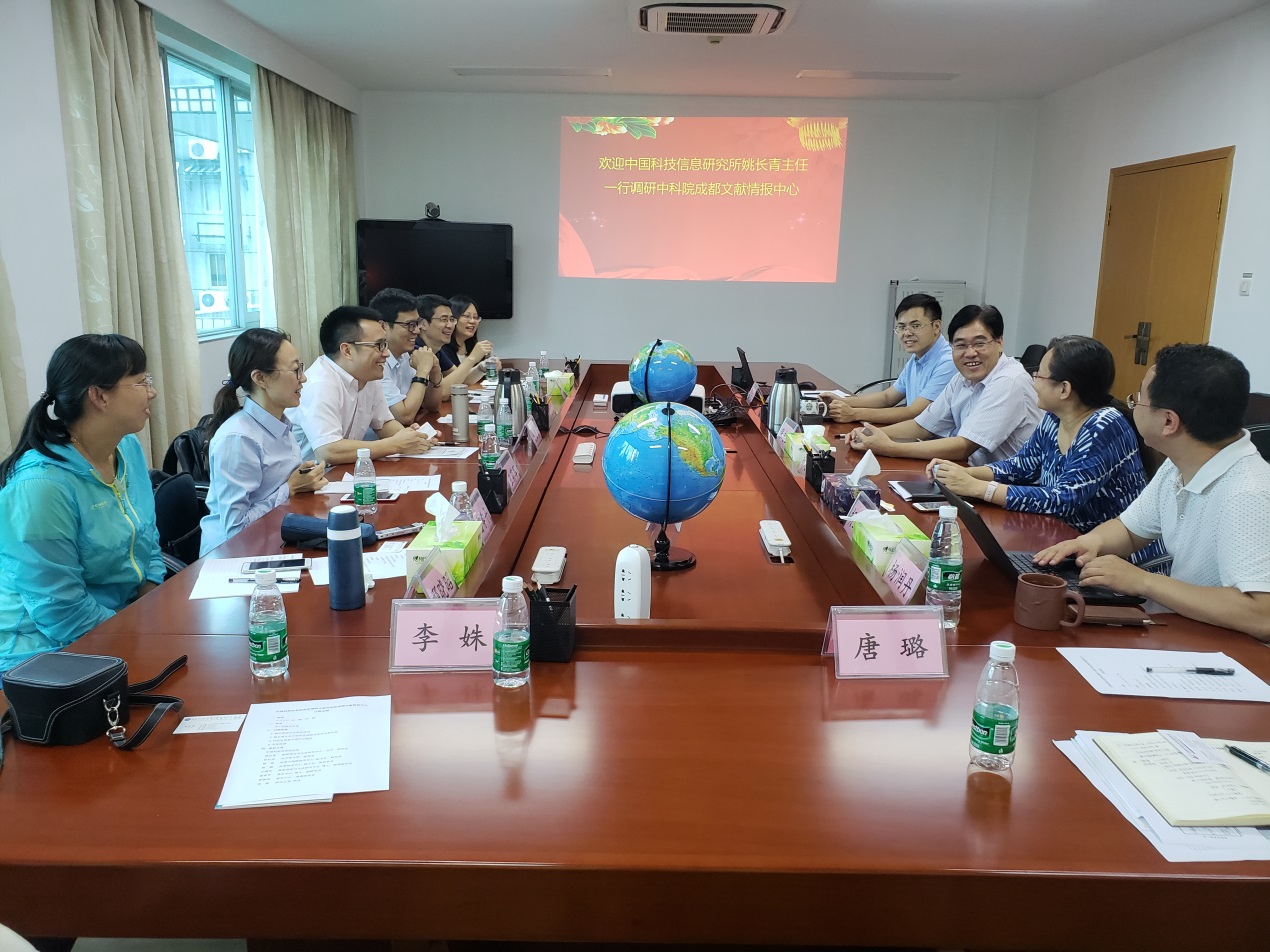 7月2日下午,中国科技信息研究所情报理论与方法研究中心主任姚长青带领情报理论与方法研究中心、政策与战略研究中心、信息技术中心、科技报告中心等部门的一行八人访问中国科学院成都文献情报中心。中心主任张志强及副主任杨志萍与科技处、战略情报部、网络与信息系统部和综合处等部门的负责人参加交流与座谈。座谈会由杨志萍主持。