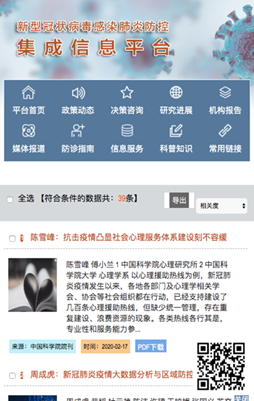2月24日,中科院成都文献情报中心建设的《新冠肺炎(COVID-19)疫情防控集成信息平台》3.0版正式上线发布、开展服务。