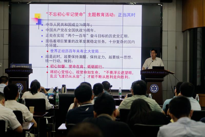 中心主任张志强作题为《不忘初心,牢记使命,为建设科技强国担当作为》专题报告。报告从深刻理解主题教育重要意义;中华民族复兴面临严峻挑战;世界经历百年未有之大变局;科技强国建设需要担当作为四个方面系统的阐述了科技强国、科技兴国的重要历史使命和紧迫时代要求。